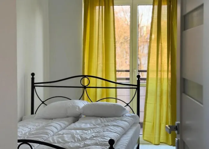 Die Ferienwohnung Przytulny bietet seinen Gästen die Annehmlichkeiten von Selbstversorgern, wie eine Küche und einen Essbereich. Diese Unterkunft ist in unmittelbarer Nähe von der nächstgelegenen Bushaltestelle Piastowska Sobieskiego.